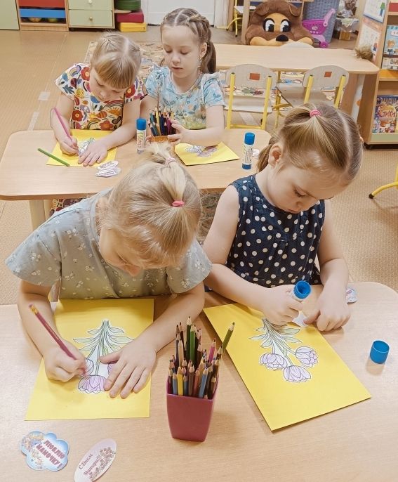 Во время творческой работы дети с удовольствием напевали веселую песенку "Снег, снежок", которая добавляла вдохновения и помогала мысленно погружаться в снежный мир. Такая атмосфера радости и творчества сделала процесс рисования особенно увлекательным и эмоциональным.