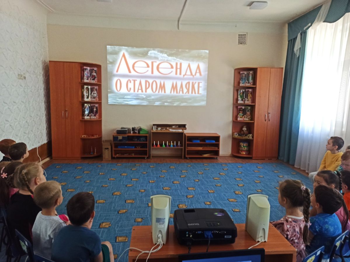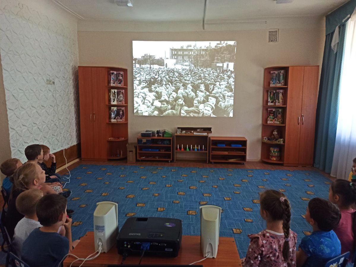 Ребятам были показаны видеохроники военных лет, а также познавательный мультфильм "Жить" и "Легенда о старом маяке". По традиции в этот день педагоги и дети почтили память о погибших минутой молчания.