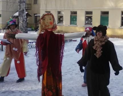 На праздник к детям заглянули весёлые скоморохи Фома и Ерёма, а вместе с ними и сказочный персонаж Медведюшка, (роли исполнили воспитатели Кузнецова Е.И., Климентова О.В. и Жамилова Т.Ю.). Гости порадовали детей своими шутками, прибаутками, играми. Заводили весёлый хоровод, играли с детьми. Как положено на празднике, дети от души веселились: водили хоровод вокруг Масленицы, пели песни, частушки, кричали дразнилки, заклички, играли в русские народные игры "Масленица", "Горелки", перетягивали канат, катались на карусели, соревновались между собой, проверяли свою меткость, ловкость, быстроту и находчивость. Всем было очень весело и задорно, звучала музыка. Ребята набегались и наигрались на свежем воздухе, остались довольны праздником.