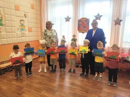 Накануне празднования государственного праздника в России в ДОУ прошёл музыкально – спортивный праздник для детей старшего дошкольного возраста. Дети вспомнили рода войск российской армии, прочли стихотворения на военную тематику, спели песни про мужчин «Бравые солдаты», «Морской капитан», «Ты не бойся, мама»; приняли участие в эстафетах на развитие физических качеств, такие как: ловкость - «Тяжелая ноша», «Минное поле», меткость - «Меткий стрелок», внимание - «Увольнительная», а также играли в спортивные игры «Взаимовыручка» и «Донесение в штаб». Дошкольники показали перестроения с флагами, декламировали стихотворения, отгадывали загадки.