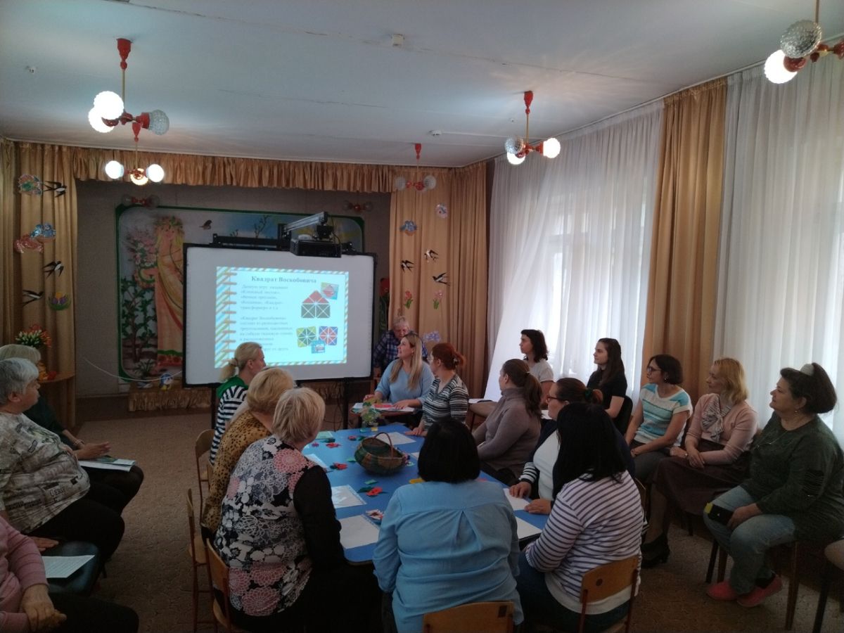 В первый день педагоги побывали на мастер- классе "Квадрат Воскобовича", который подготовила и провела призер конкурса "Педагог года - 2024" воспитатель Салос М.А, где научились изготавливать квадрат своими руками и придумывать сказку с использованием данного пособия.