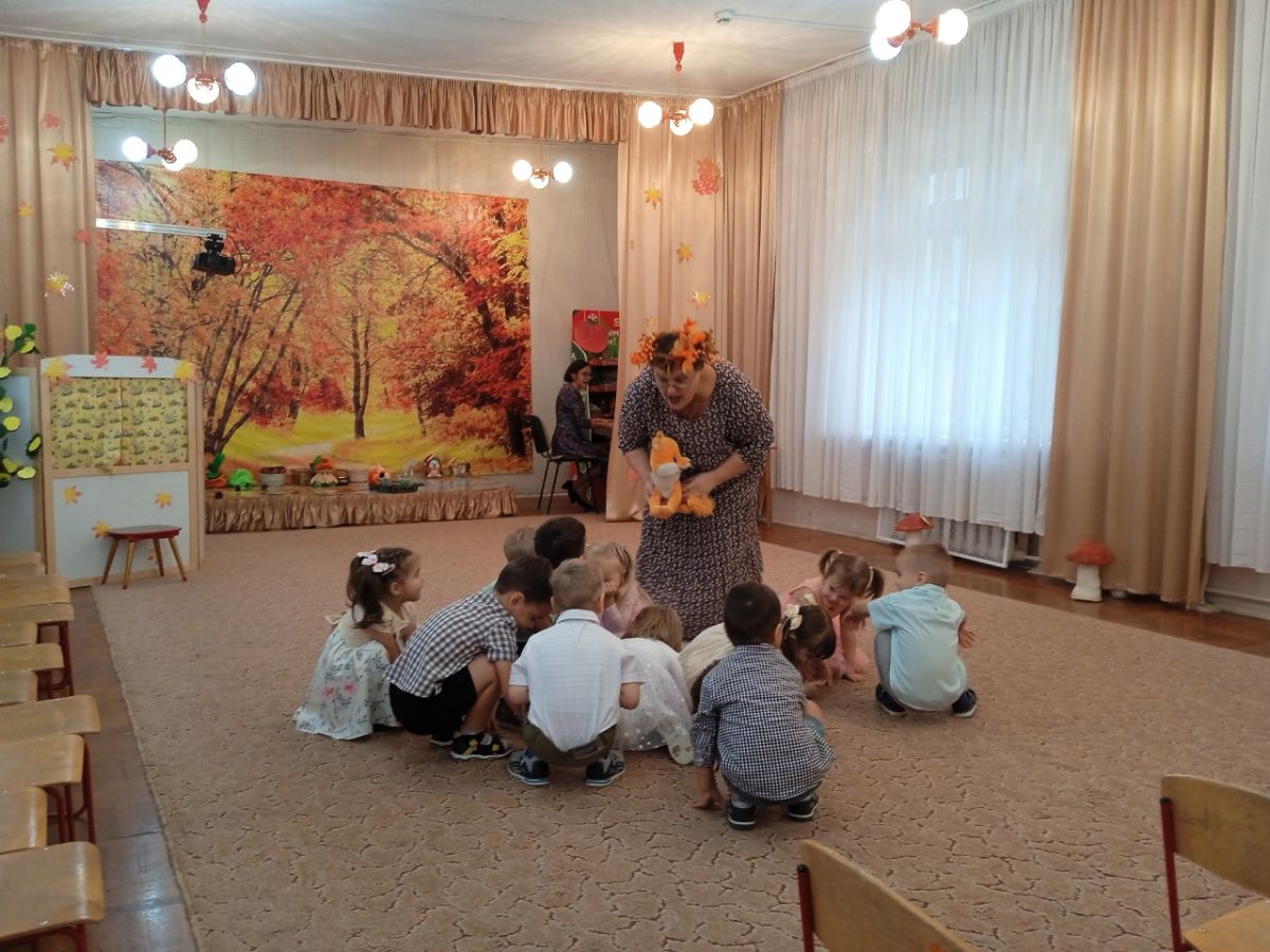 В гости к ребятам пришли сказочные герои: красавица Осень, весёлая Дождинка и задорная Непогодушка, добродушный Ёж, статный Грибок. Дети старшей группы побывали на Осенней ярмарке, где встретили среди обычных покупателей очень выразительного и артистичного Волка.